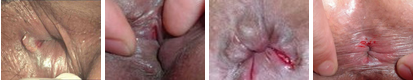 Ⅰ期肛裂症状:肛管皮肤浅表纵裂,创缘整齐、鲜嫩。触痛明显,创面富于弹性。