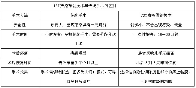 TST微创术,又称选“择性吻合器痔切闭术”或“开环式微创痔上粘膜切除吻合术”,是在PPH技术的基础上,对原有的术式进行改良,而产生的新的技术,为王业皇教授所发明(专利号:200620073077.2),被肛肠诊疗界誉为目前为止安全的微创技术。 >>微创技术详情链接,点击与专家一对一免费咨询