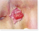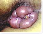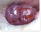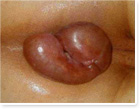 Ⅱ度:痔核较大隆起,质柔软,痔面鲜红或青紫,伴内痔脱出,便后自行还纳。