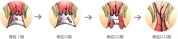 Ⅳ度:脱出不能还纳。行走、喷嚏、或站立时痔核脱出肛外。平卧、热敷后才能回纳。